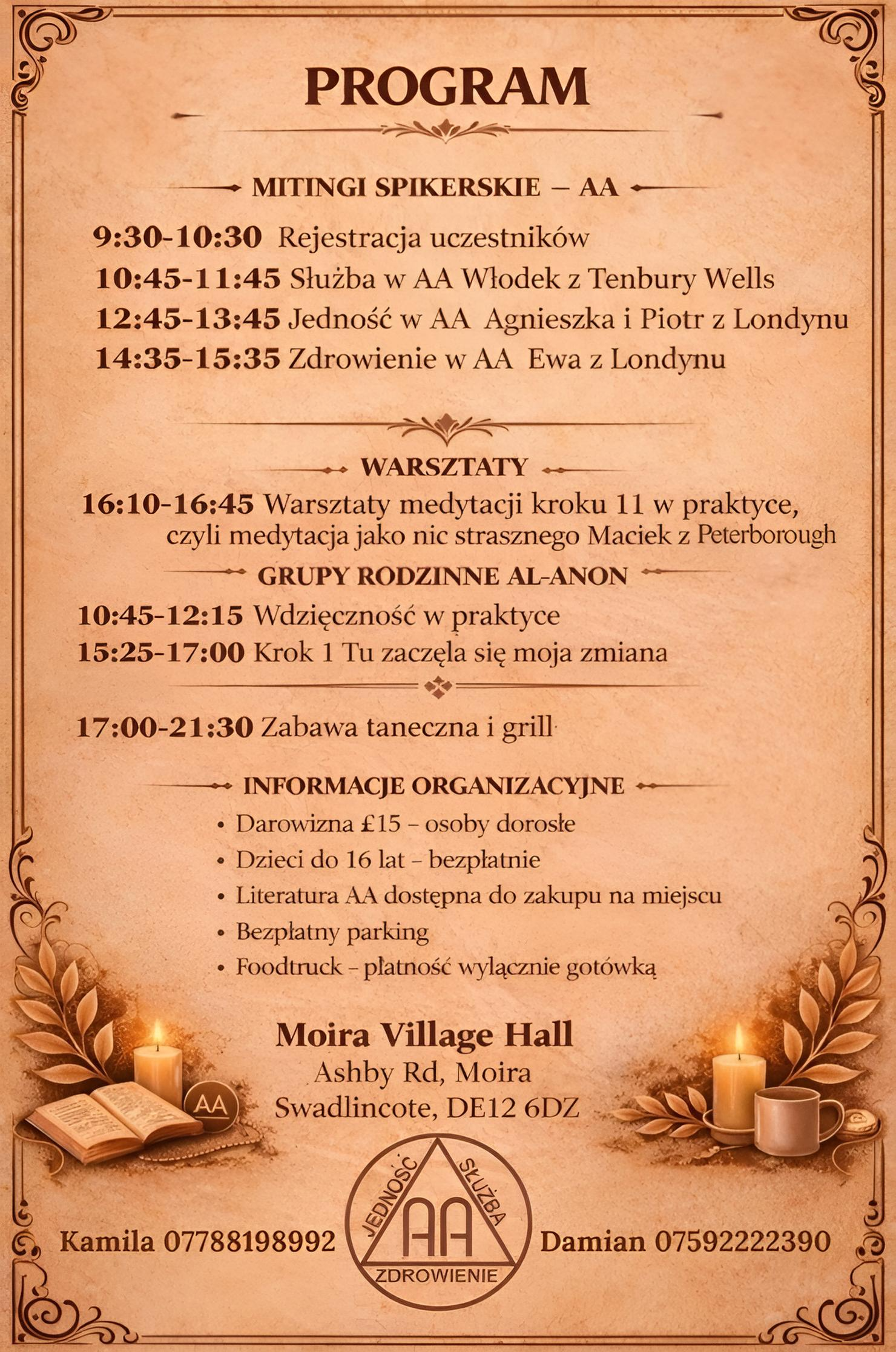 Szczegółowy harmonogram godzinowy znajdziesz na ulotkach poniżej. Kliknij w obrazek, aby go powiększyć.